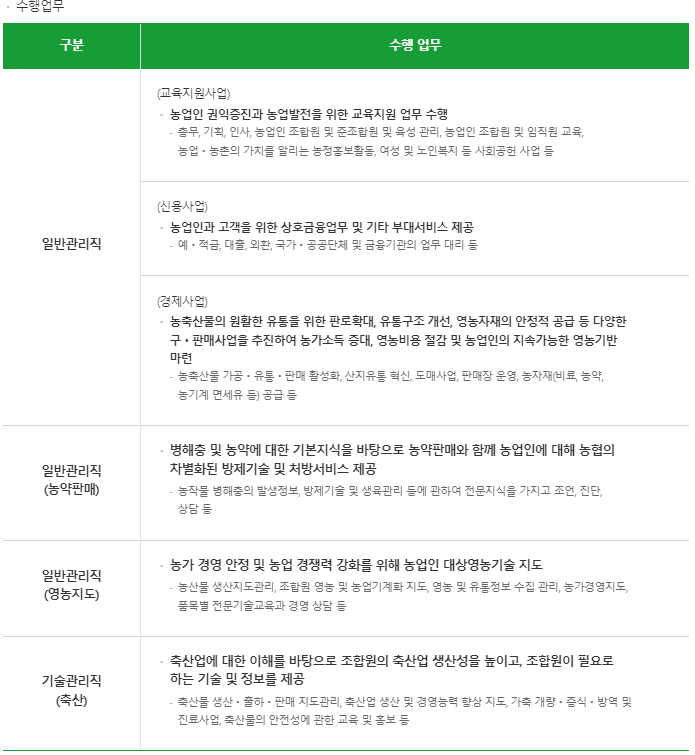 지농 지역농협 주요 직무