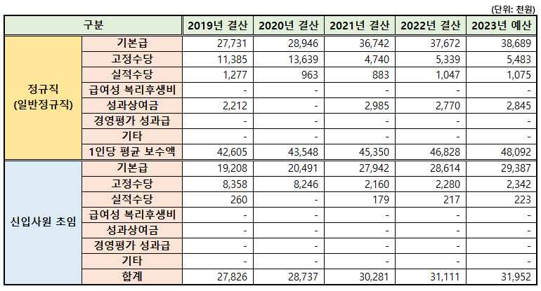• 연봉 및 복리후생: 초봉 3,500만원 수준, 평균 연봉 5,000만원 이상, 주택자금 대출, 자녀 학자금 지원, 의료비 지원 등
