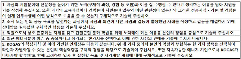 1 한국가스공사에 지원하게 된 동기 및 입사 후 포부에 대해 기술하십시오.